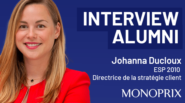 Johanna Ducloux (ESP 2010), Directrice de la stratégie client chez MonoprixAprès un BTS à l’ESP, Johanna termine son cursus par une expérience en tant que chef de projet médias chez Monoprix. Une opportunité qui lui permet de faire ses premiers pas dans le secteur de la grande distribution et de découvrir un univers qui façonnera sa carrière.Après avoir travaillé plus de 10 ans au sein de grandes enseignes de distribution, Johanna revient chez Monoprix en tant que Directrice de la stratégie client. Retour sur son parcours brillant.